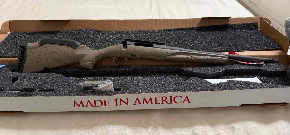 Brand new in box, never shot. Ruger 400 legend bolt action tan color. Muzzle break on barrel.