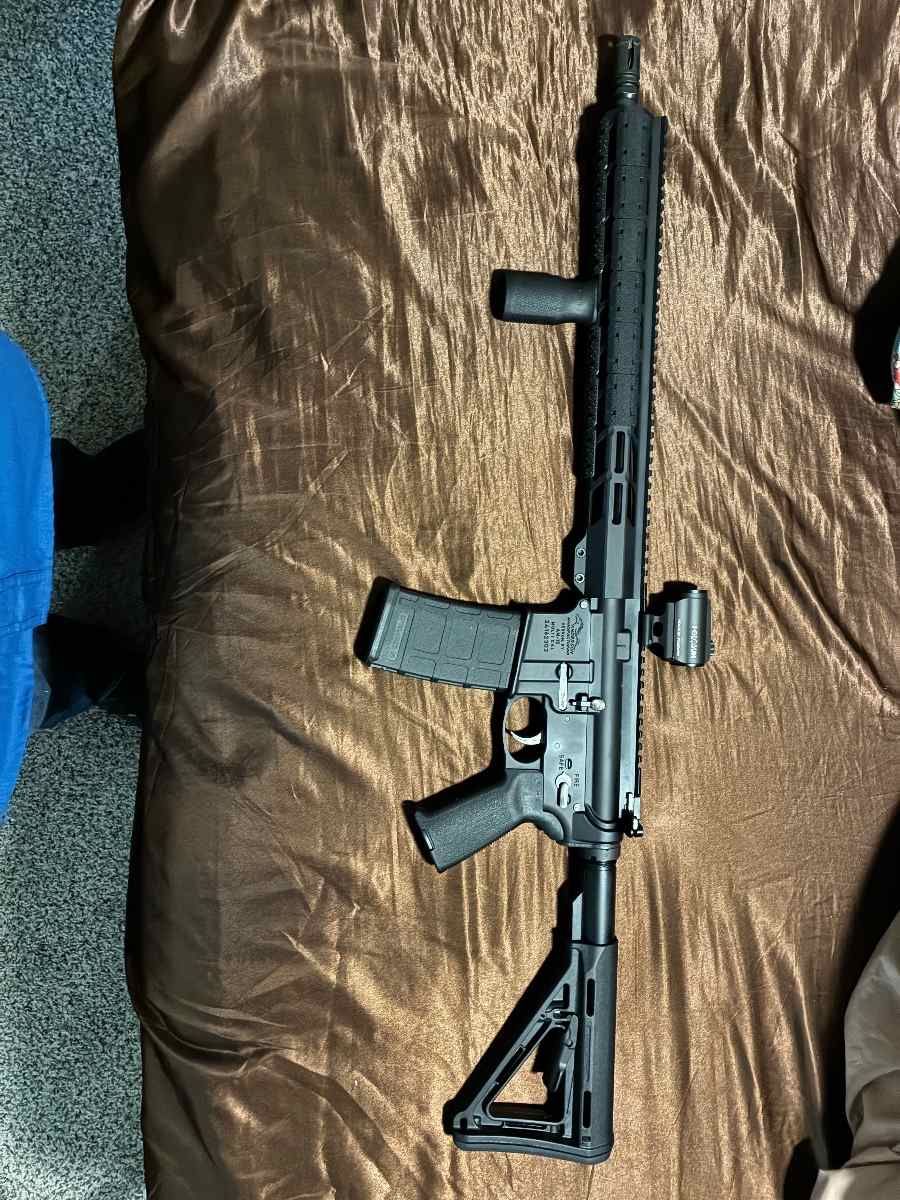 556 ar-15 Anderson manufacturing holoson green dot solar charging very grip mag pull furniture. Has only had 4 30 round mags through it. Asking 600 or trade for 2 hand guns or a pdw